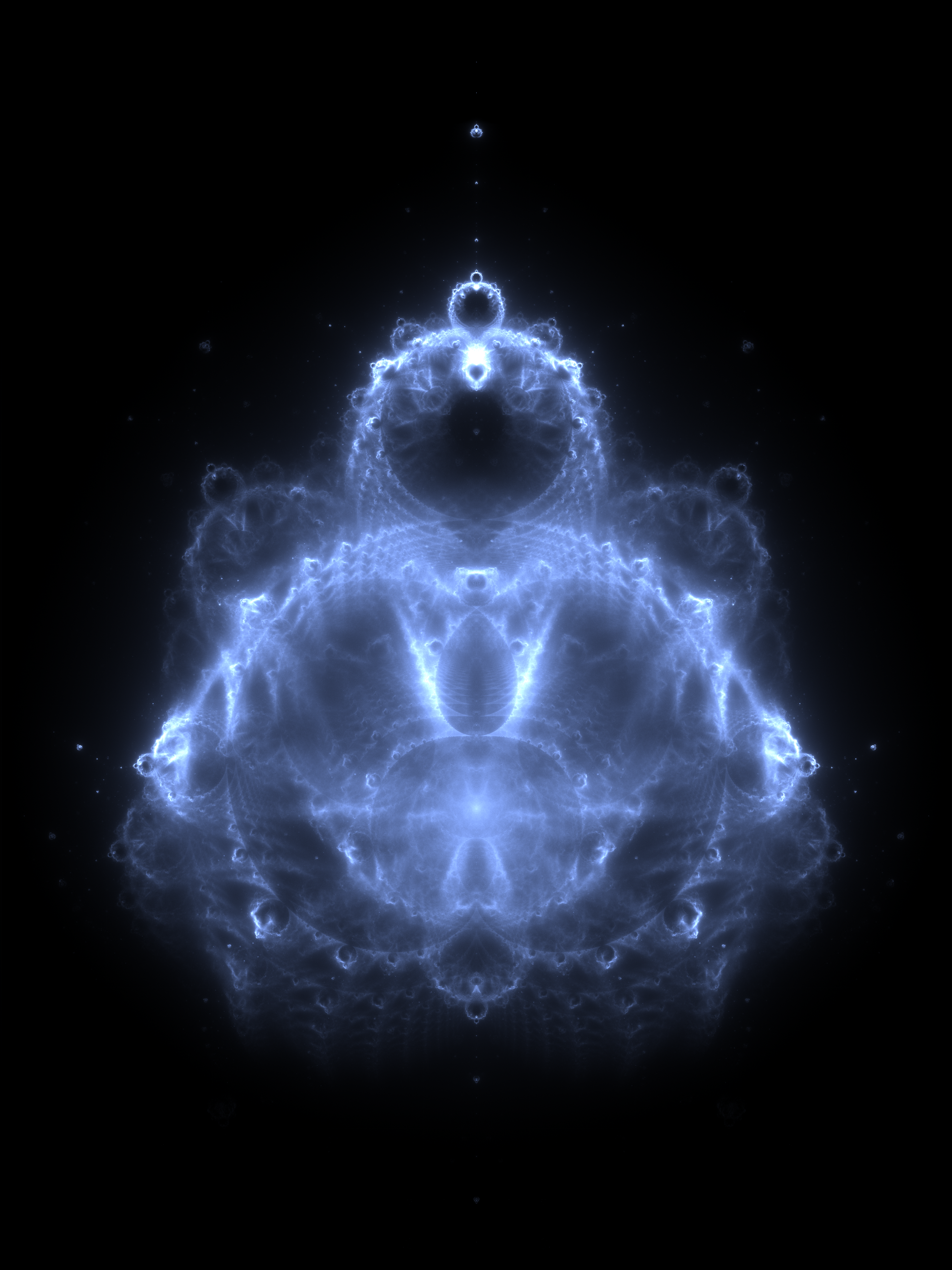 It looks at the Mandelbrot set with exponents other than 2 and constructs a fractal in which the coordinate is the exponent used in the Mandelbrot set. I was looking for a new cover image for my blog at the time and decided to use the complex-exponent Mandelbrot set, but with a twist: I'd render a cloudy histogram of all the trajectories of points that escape the Mandelbrot set, a technique known as the Buddhabrot.
