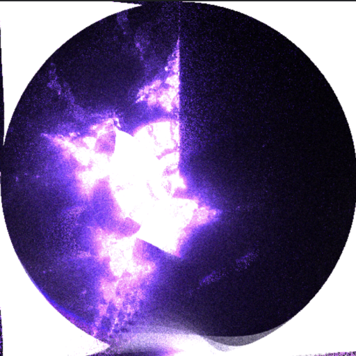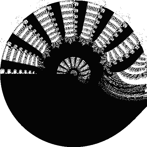 We can see the interesting grid-like structure from the video, but the image is black-and white, which makes it kind of boring. This means it's time to add the Mandelbuddha histogram counting.