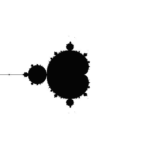 As you can see, this code hardcodes the complex square function and uses 100 iterations to determine if a point is in the Mandelbrot set. The result is as follows: