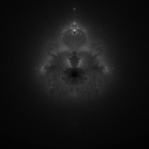 The current architecture assumes the color for all pixels is independent of each other and can be computed from just the coordinate. This is not the case for the Mandelbuddha, as a pixel can be colored from any point that has a trajectory passing through it. What we can do instead is sample N randomly positioned points, run the Mandelbrot iteration on them, and record the trajectory of each point that escapes in an atomic histogram: